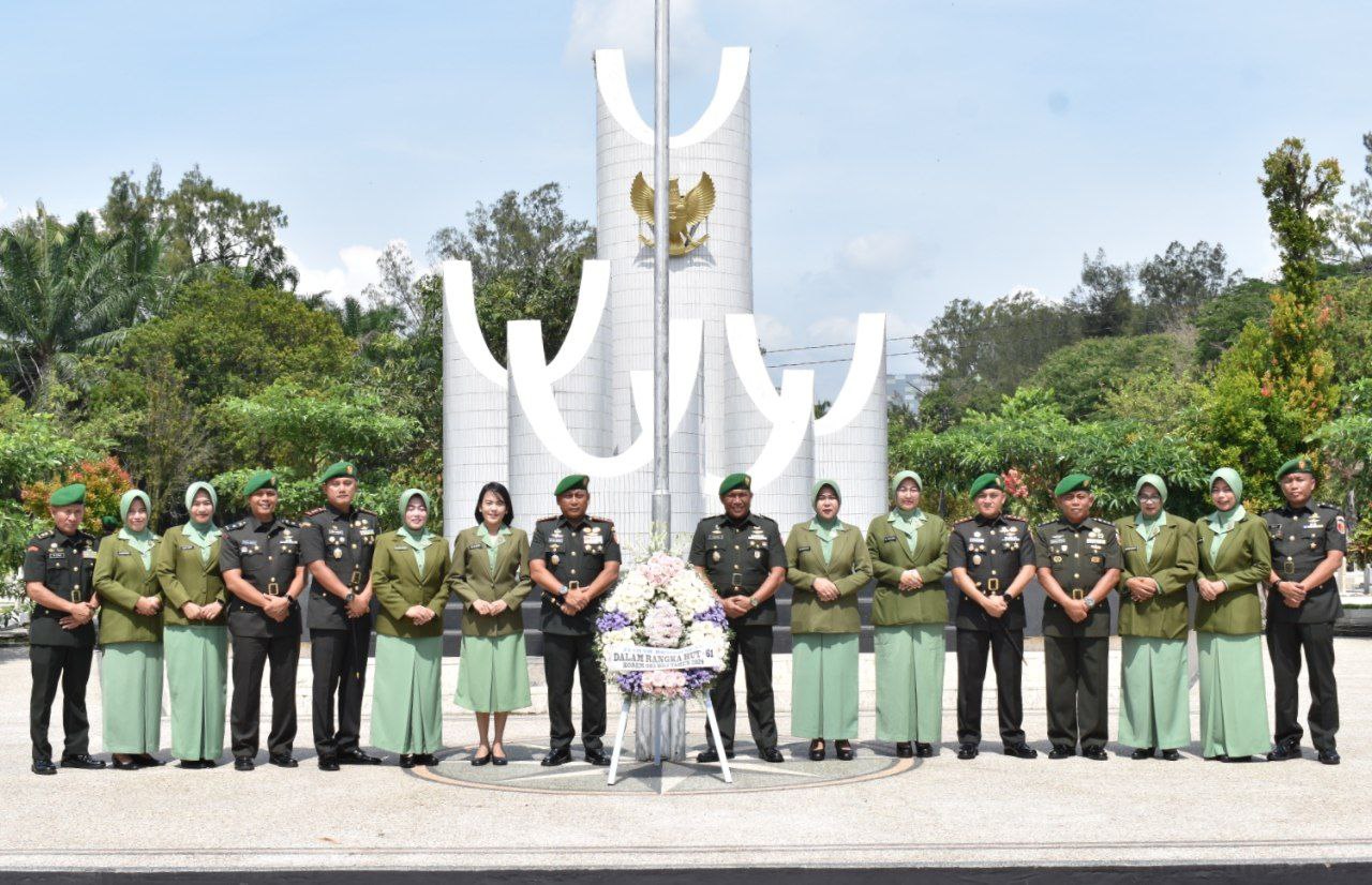 Dalam rangka memperingati HUT Korem 083/BDJ yang ke-61, Dandim 0818/Malang-Batu, Letkol Inf Yuda Sancoyo, M.Han., bersama Ketua Persit KCK Cabang XXXII Kodim 0818, turut menghadiri kegiatan ziarah di Taman Makam Pahlawan (TMP) Suropati, Malang. (11/2024).