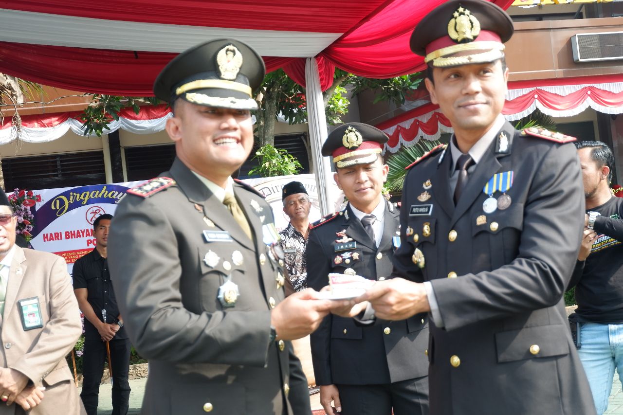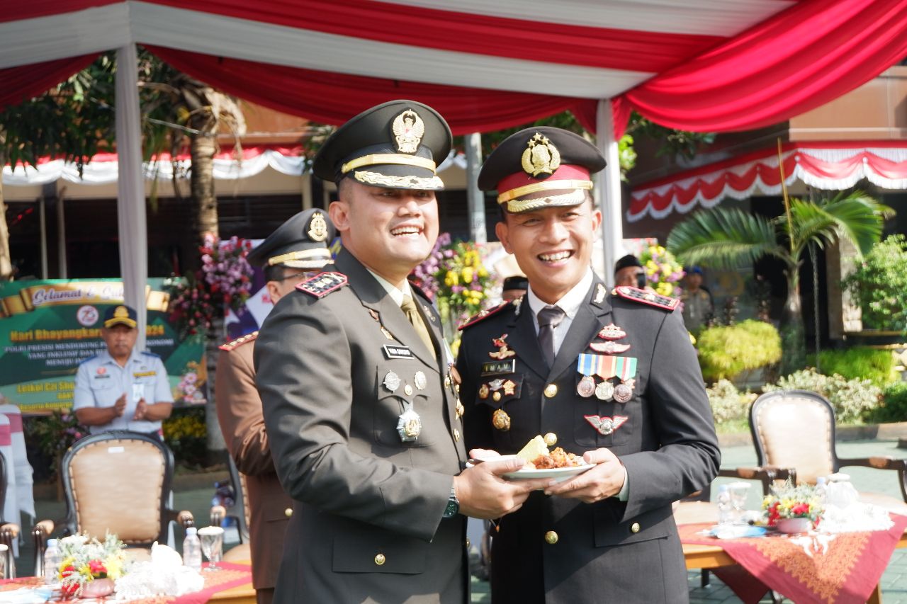 Letkol Inf Yuda Sancoyo dalam sambutannya menyampaikan harapan agar sinergi antara TNI dan Polri terus terjaga dan semakin kuat. “Saya berharap dengan peringatan HUT Bhayangkara ke-78 ini, kita semua dapat terus bersinergi untuk menciptakan kondisi yang aman dan kondusif, serta berkontribusi dalam mewujudkan transformasi ekonomi yang inklusif dan berkelanjutan menuju Indonesia Emas serta semoga Polri kedepan semakin jaya dan semakin dicintai Rakyat.” ujarnya.