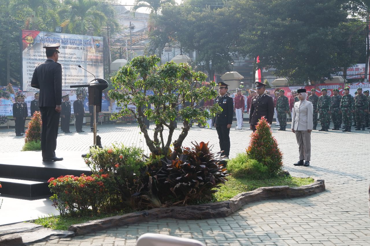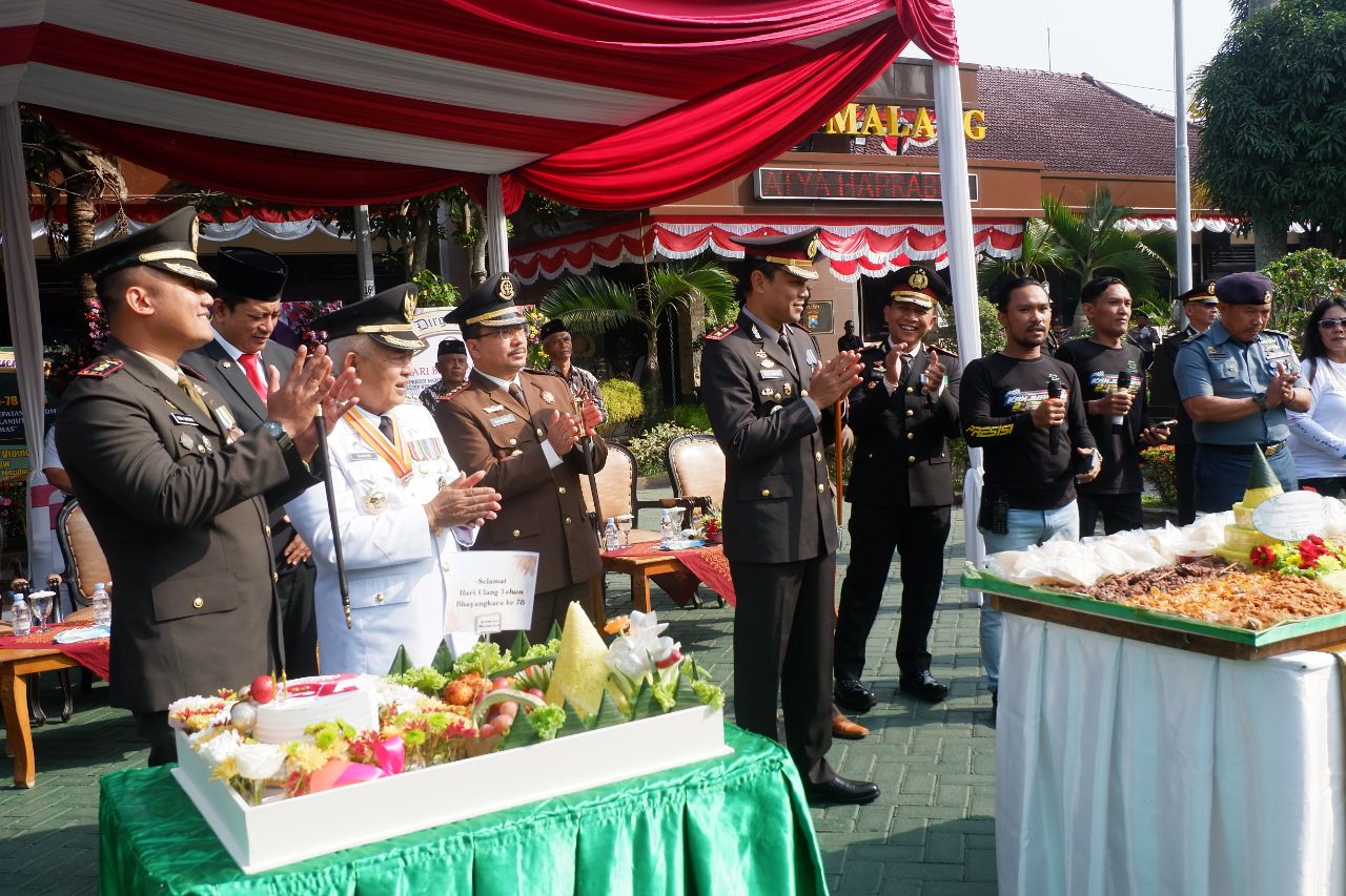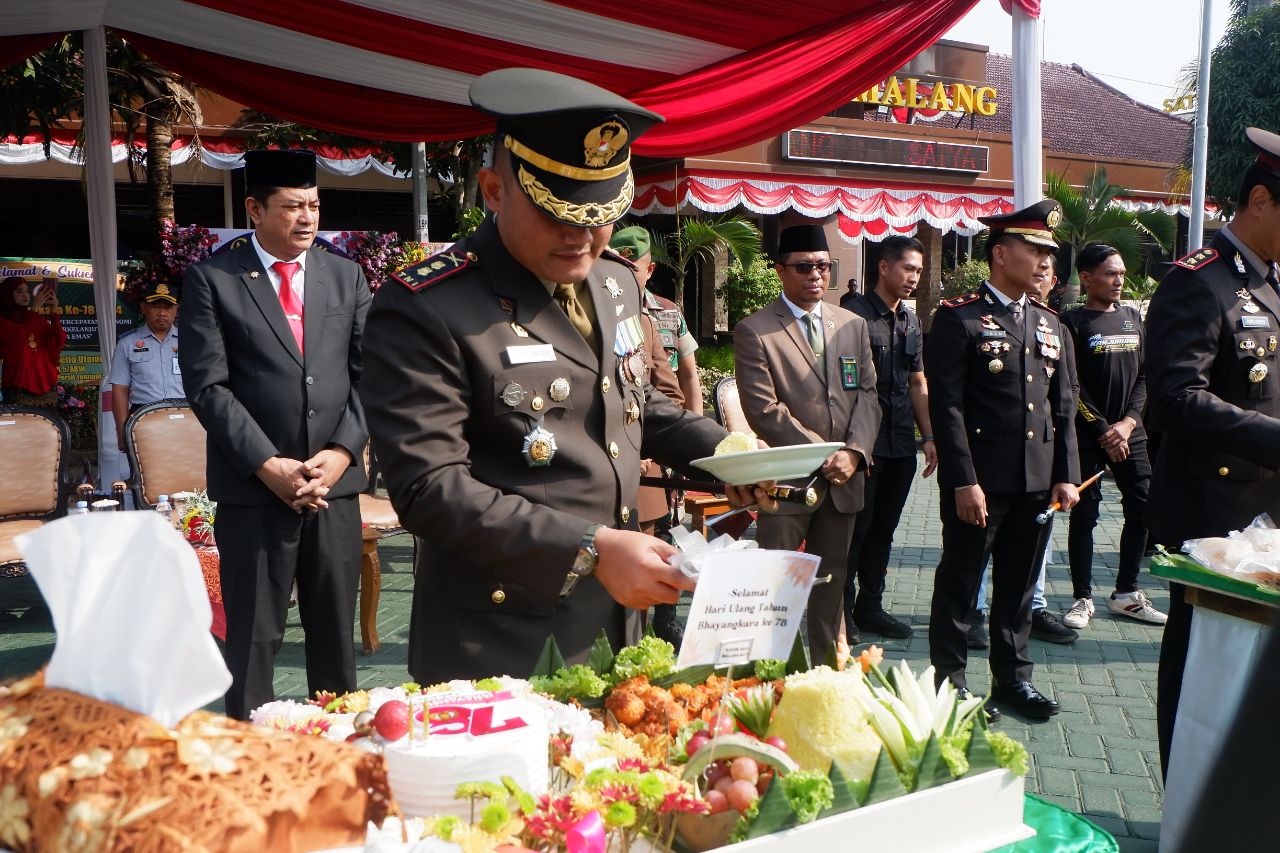Kodim 0818-Dalam rangka memperingati HUT Bhayangkara ke-78, Dandim 0818/Malang-Batu Letkol Inf Yuda Sancoyo, M. Han., menghadiri upacara yang diselenggarakan di Markas Kepolisian Resor (Mapolres) Malang, Kepanjen, Kabupaten Malang.